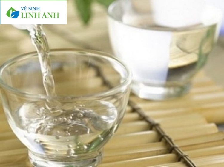 + Bước 1: Tiến hành pha theo tỉ lệ 1:1 hỗn hợp rượu và nước ấm. Chứa hỗn hợp này trong chậu nhỏ hoặc bát tô để tiện lợi cho việc sử dụng.