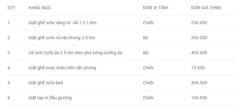 3. Bảng báo giá dịch vụ giặt ghế sofa tại nhà giá rẻ