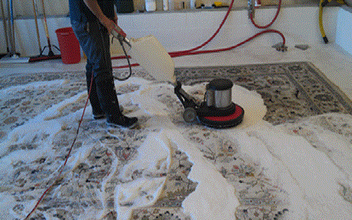 – Tiếp theo dùng máy đánh thảm, đánh lần lượt từ chỗ bẩn cho đến chỗ sạch