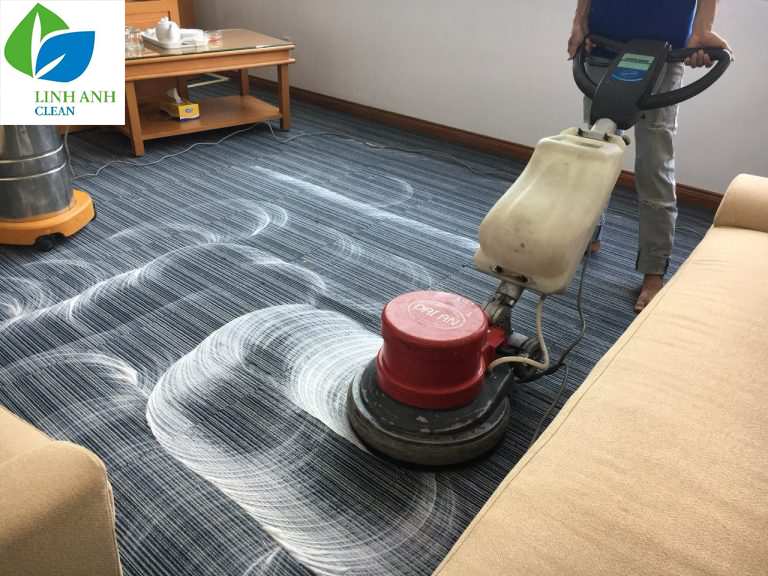 Linh Anh Clean tiến hành giặt thảm trải sàn cho nhà chị Mai quận Hoàng...