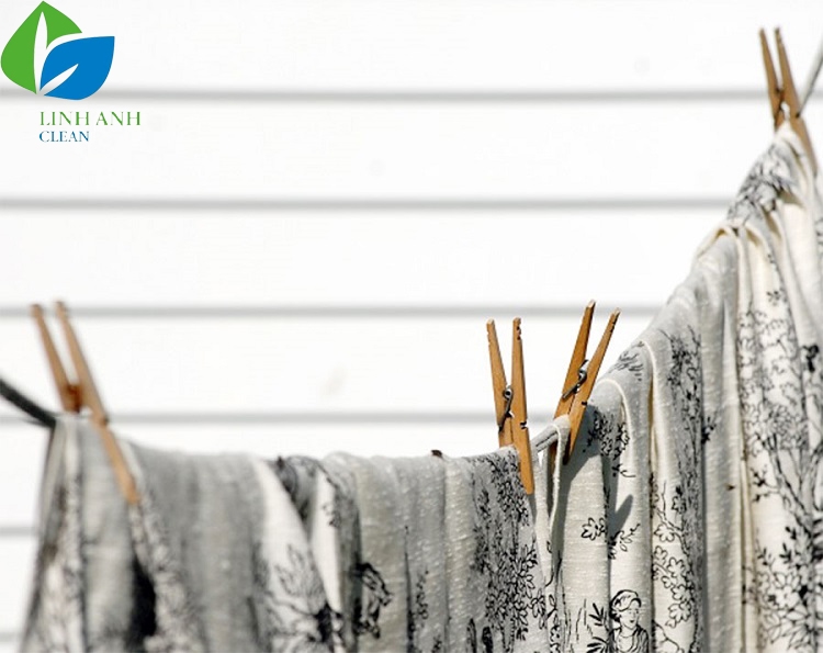 Sau khi đã hoàn tất việc giặt rèm cửa, tiếp theo bạn nên đem ra ngoài trời phơi khô để không bị ẩm mốc và tạo mùi hôi khó chịu. Đặc biệt, bạn nên chọn phơi rèm cửa vào ngày nắng nhẹ và có gió, hạn chế phơi vào lúc giữa trưa nắng gắt vì như thế rất dễ làm phai màu vải.